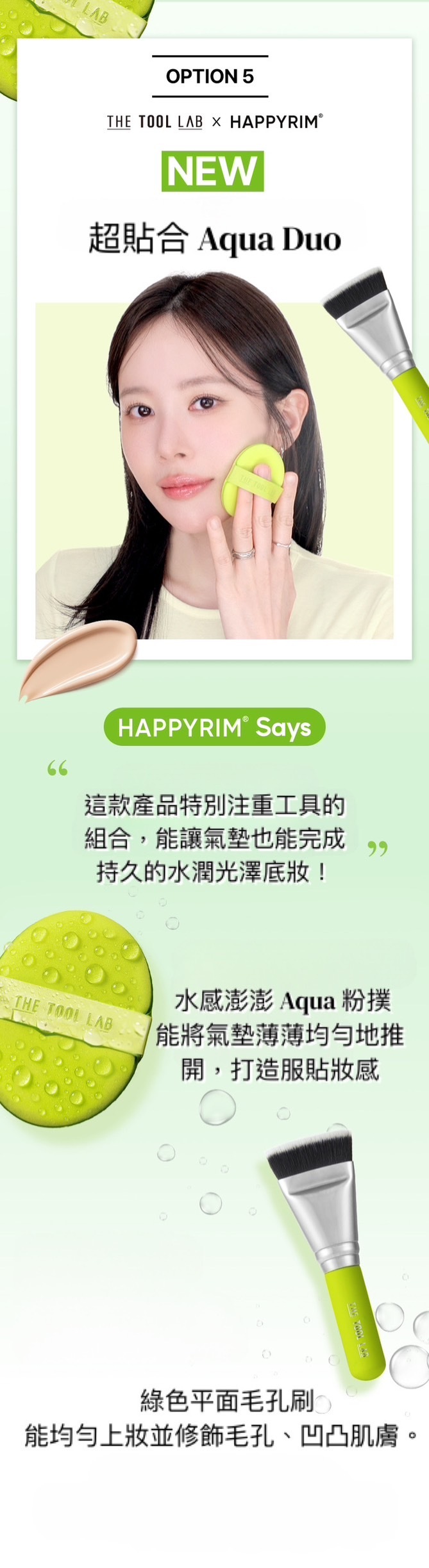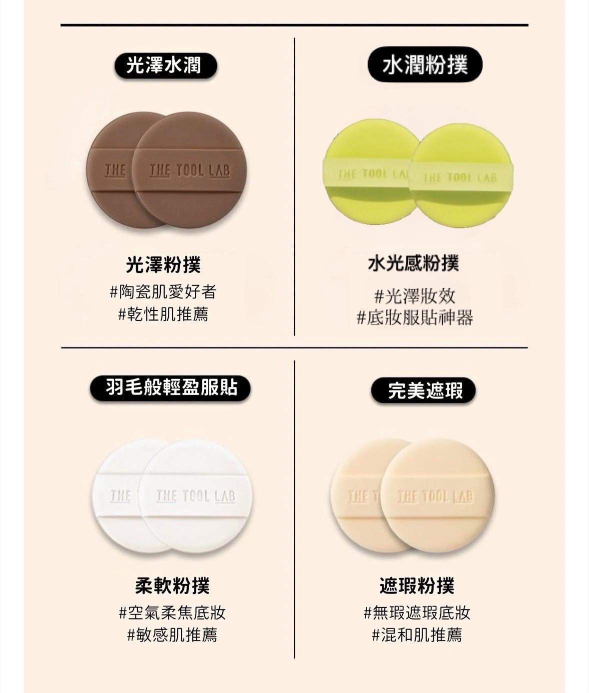 組合內容:印章氣墊+圓形粉撲4入組+粉撲刷具清潔皂+Ongredients 屏障鎮靜乳液 +(綠粉撲刷具或光澤粉撲刷具擇一)