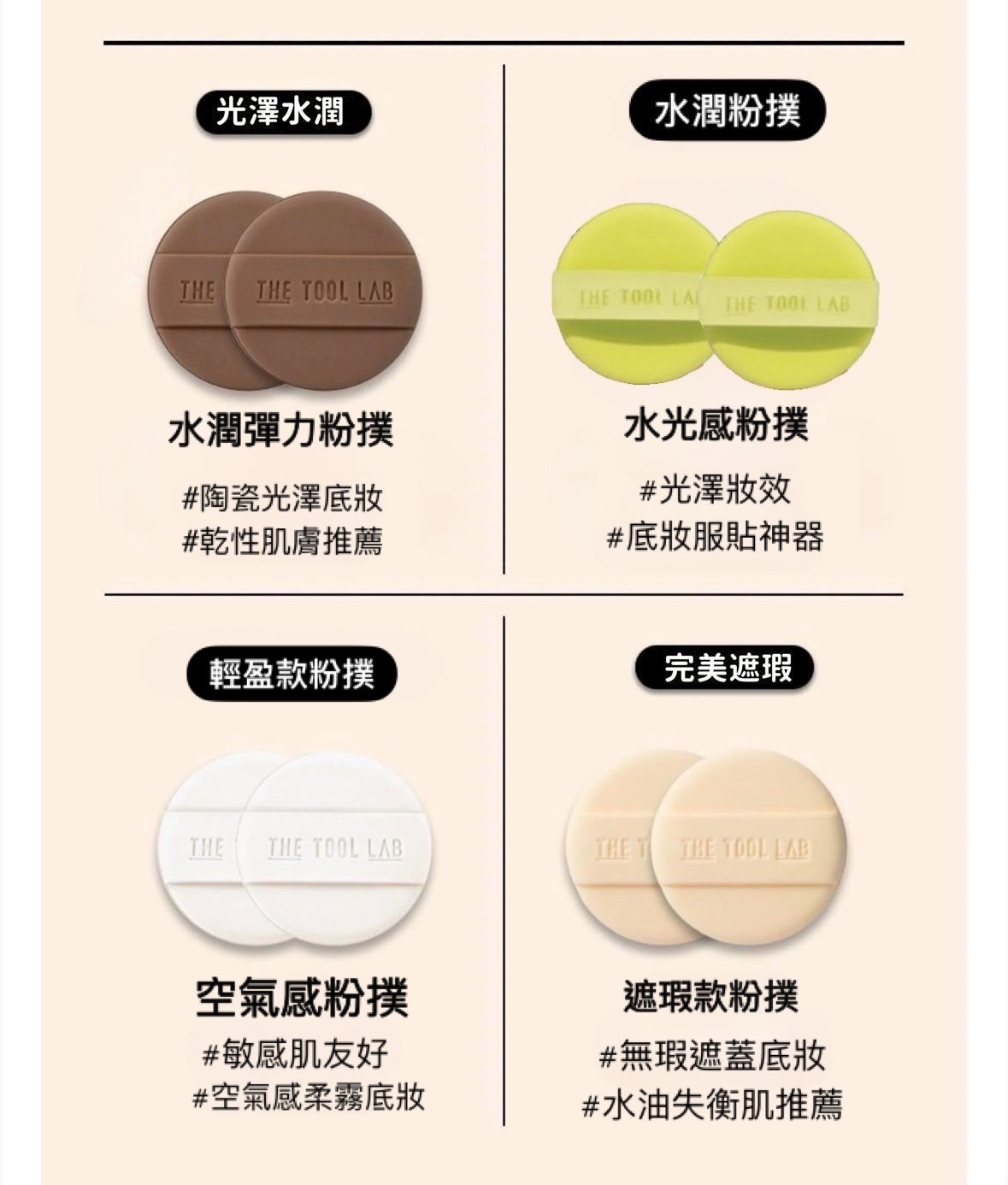 組合內容:印章氣墊+圓形粉撲4入組+粉撲刷具清潔皂 +(綠粉撲刷具或光澤粉撲刷具擇一)